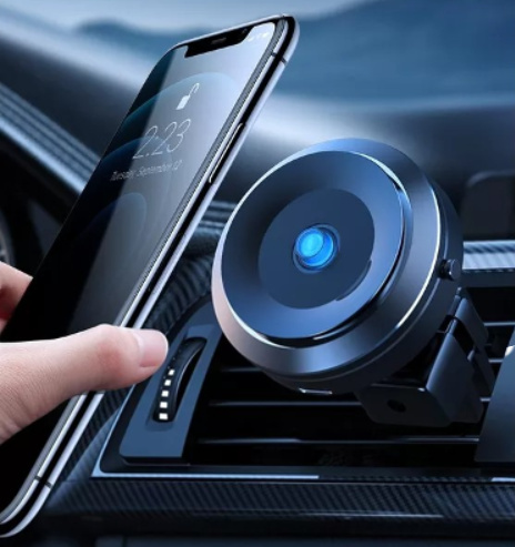 Mobilholder, der holder din telefon på plads uanset størrelse. Telefonen holdes på plads ved hjælp af den elektriske sugekop. Når du vil fjerne telefonen, trykker du bare på en knap på siden, så løsnes telefonen nemt.