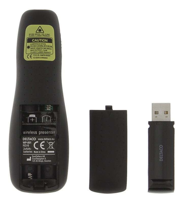 DELTACO trådløs presenter med laserpegepind, plug and play, 15 meters