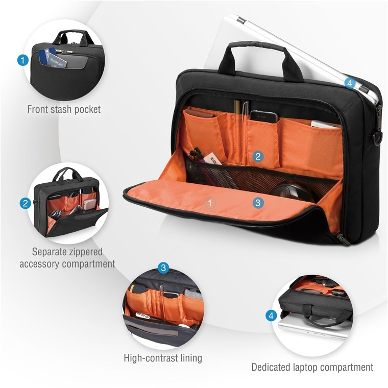 Rum til: Computertilbehør, Pung, Hovedtelefoner, Kreditkort, Mediaplayer, Strømforsyning, Laptop, Rejsedokumenter, Smartphone, Stifter, Visitkort