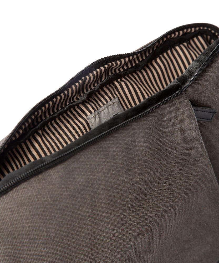 Kanvasväska för bärbar dator från Lord Nelson. Smidig väska i två färger med plats för 15” dator. En datorväska som är lätt att ta med sig på arbetsmötet och kan anpassas med eget tryck eller brodyr. På insidan finns ett extra fack som stängs med kardborre med plats för exempelvis almanacka eller mindre anteckningsblock. På framsidan finns en ficka som stängs med dragkedja och baksidan har ett mindre fack som också stängs med dragkedja. Kortsidan har ett handtag samt en visitkortsficka.
