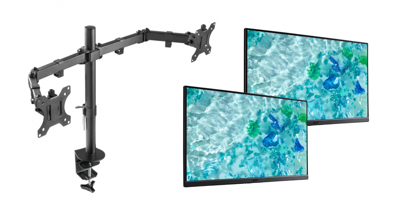 Skrivebordsbeslag til to skærme og to Acer-skærme – Pre-owned, Klasse C