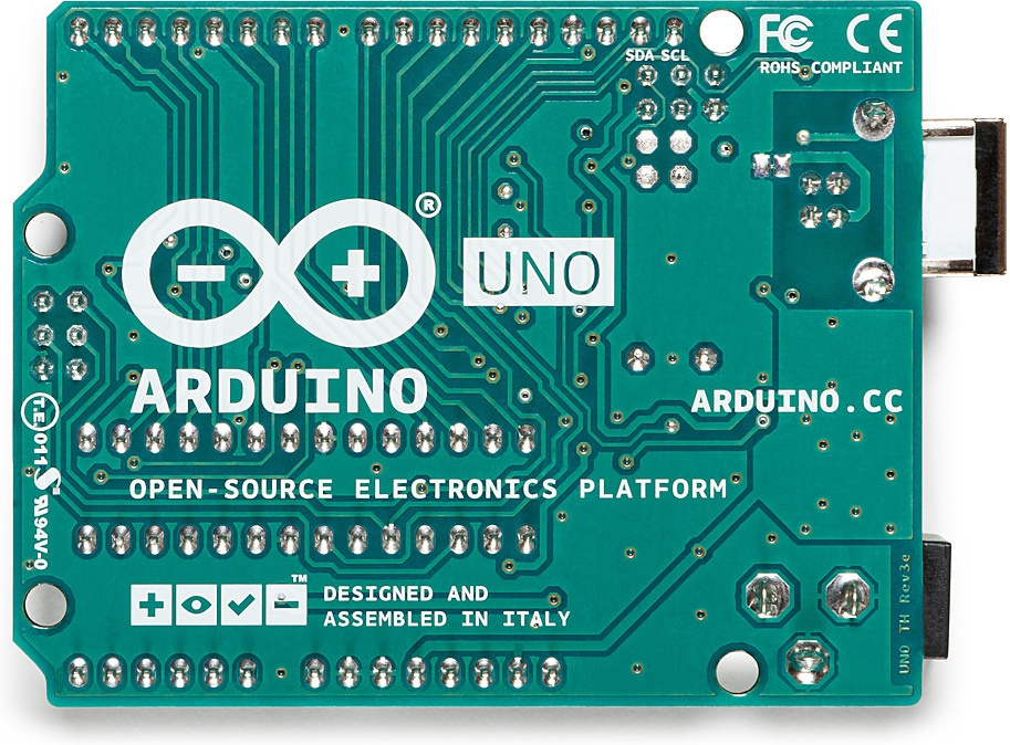 Arduino Uno Rev. 3 er en udviklingsplatform baseret på ATmega328-processoren. Arduino Kortet har 14 digitale ind-/udgange (hvoraf seks kan bruges som PWM-udgange), seks analoge indgange, en 16 MHz-oscillator, en ICSP-port, en reset-knap, USB- og strømgrænseflader. Konceptet er en alsidig åben udviklingsplatform. Arduino Det er nemt at komme i gang: Bare download det færdige udviklingsmiljø (Win, Mac, Linux), og sæt kortet i USB-porten på din pc.