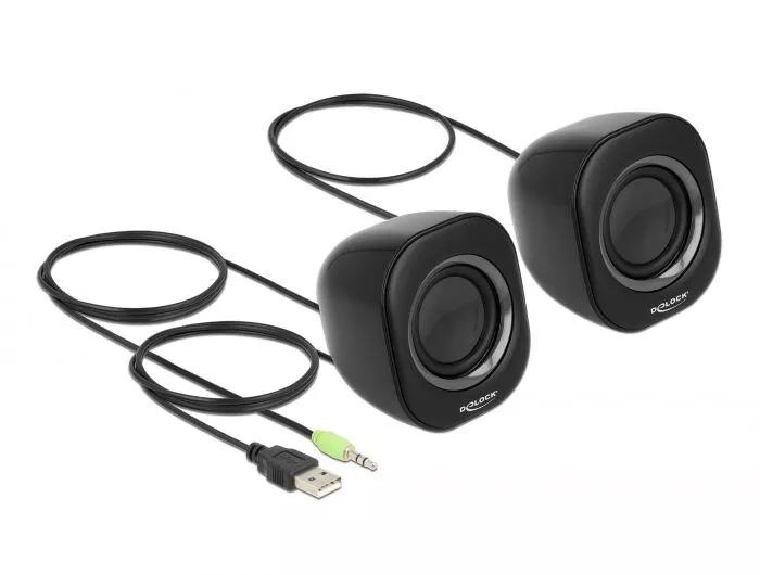 DeLOCK Mini Stereo PC Speaker with 3.5 mm stereo jack male and USB