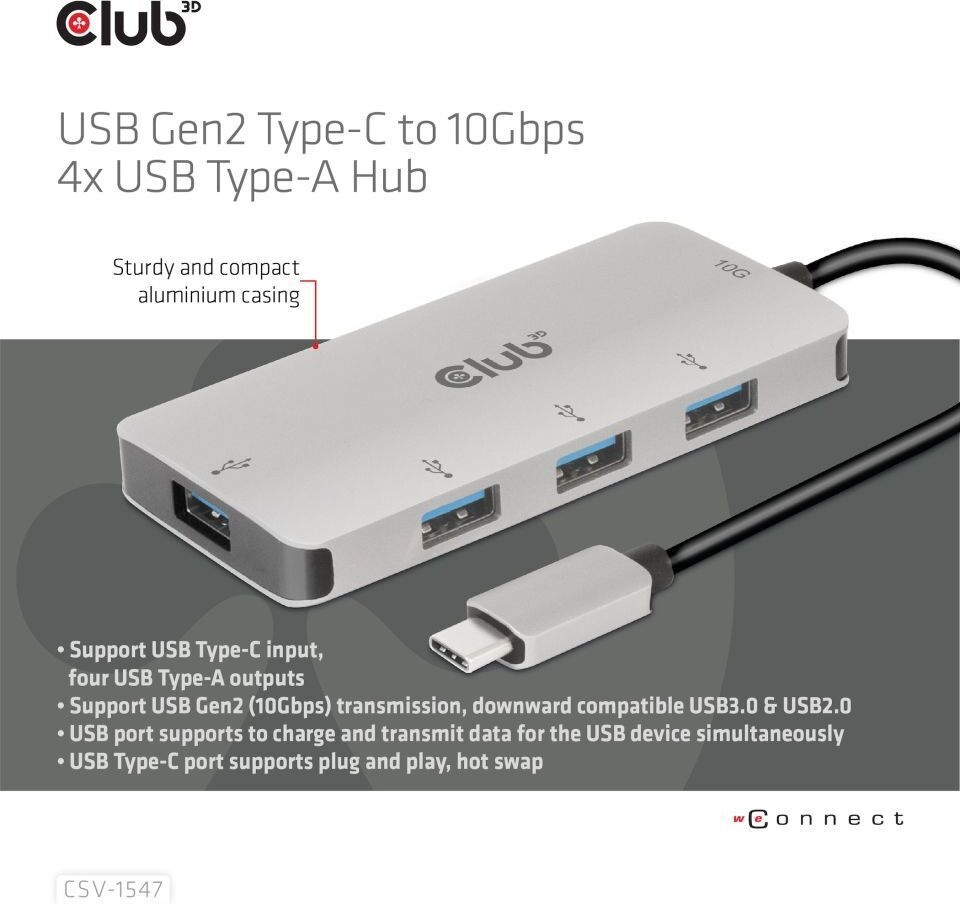 Club 3D USB Type-C til 10 Gbps 4x USB Type-A-hub
