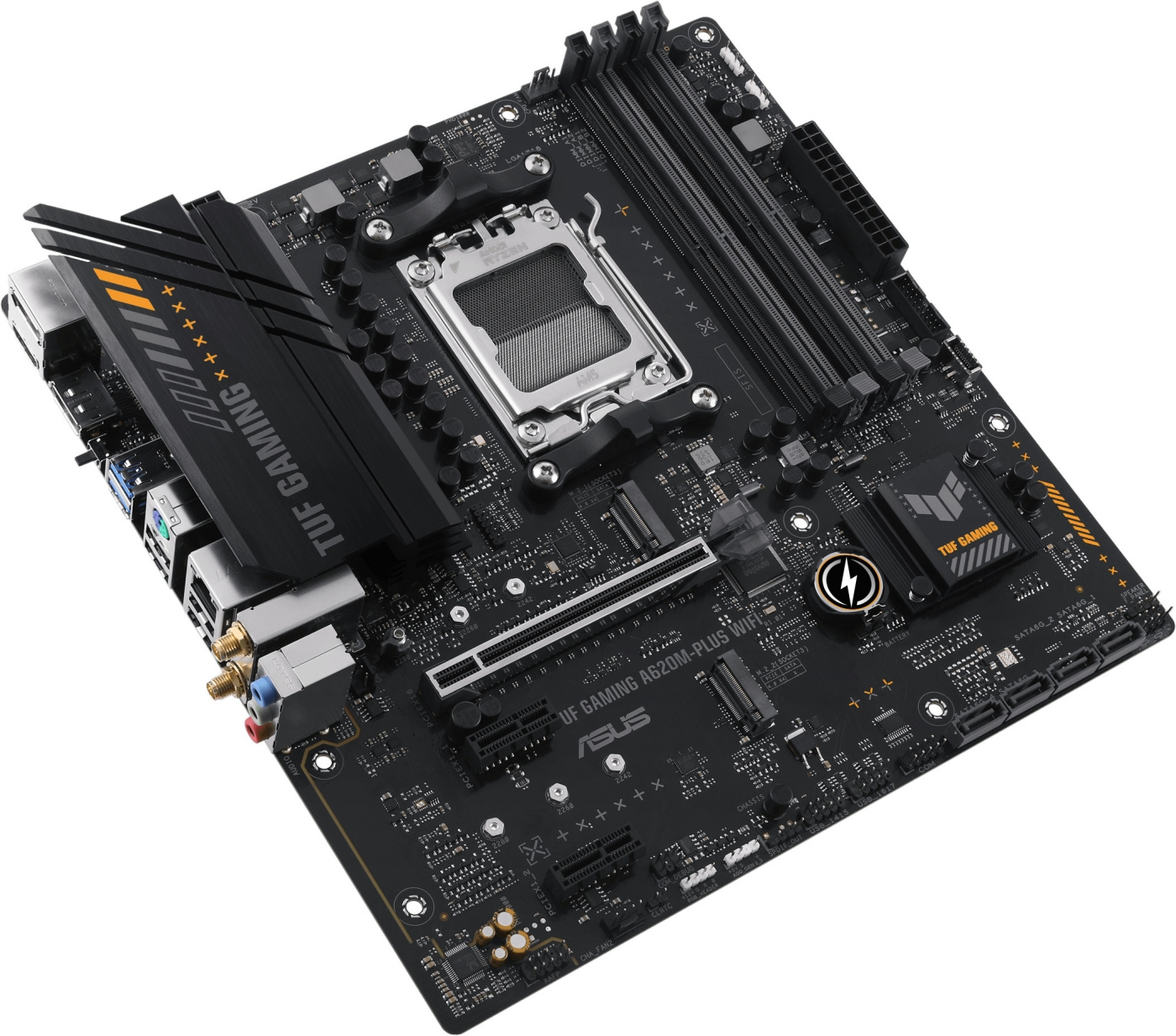 ASUS TUF GAMING A620M-PLUS-bundkortet understøtter AMD Ryzen 7000-seriens CPU'er og tilbyder funktioner i gaming-klasse og holdbarhed til en overkommelig pris. Strømforsyningen og kølesystemet giver stabil ydelse til lange gaming-sessioner. Bundkortet understøtter DDR5-hukommelse og inkluderer højhastigheds PCIe 4.0 M.2-lagring.