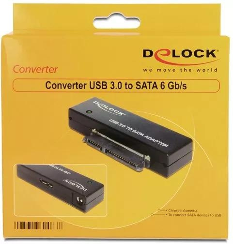 DeLOCK Converter, USB 3.0 til SATA direkte docking, 1xSATA 22-pin hun, 1xUSB 3.0 Micro B hun, 6Gb/s, sort