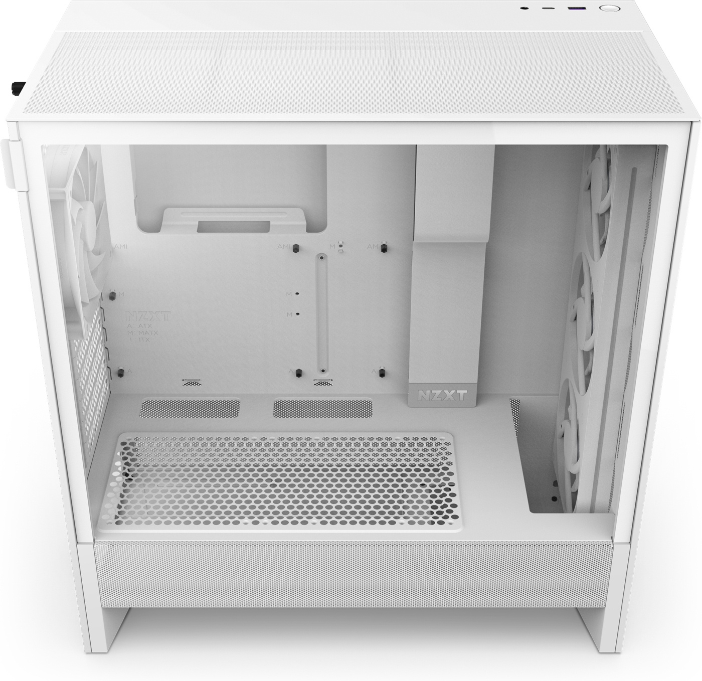 Strømforsyningsdækslet er perforeret på siderne og i bunden, hvilket muliggør optimal luftindtag fra to 120 mm-blæsere (medfølger ikke). Det understøtter en køler på op til 360 mm foran og en køler på 240 mm øverst, hvilket giver effektive muligheder for væskekøling. Et meget fint net på top-, front- og sidepanelerne maksimerer luftstrømmen og filtrerer støv effektivt.