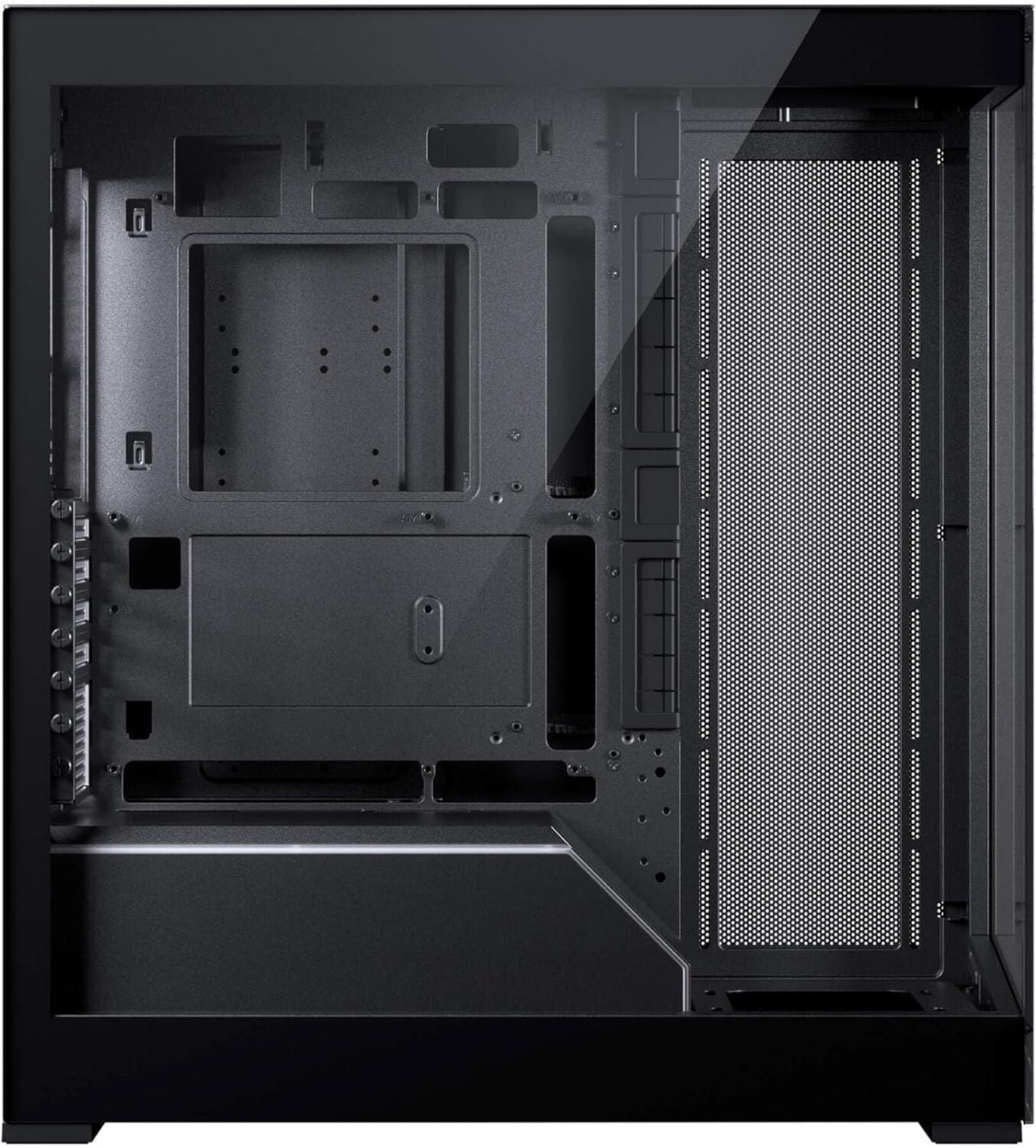 De næsten sømløse glaspaneler sikrer en perfekt udsigt til alle dine komponenter. Top- og sidepanelerne er udstyret med et meget fint, højtydende net, der giver høj luftgennemstrømning og god støvfiltrering. Kabinettet understøtter otte 120 mm blæsere, hvilket sikrer køleeffekt i topklasse. Derudover er der plads til to 360 mm kølere i top- og sidepanelerne.