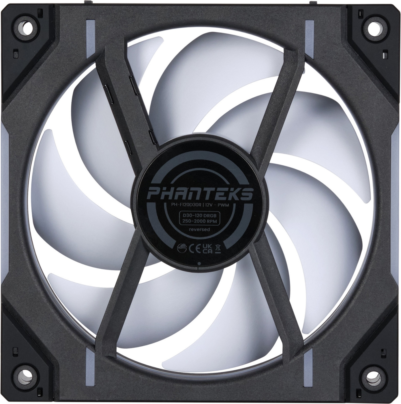 Phanteks D30-120 er udstyret med integreret D-RGB-belysning på hele rammen og vingerne på alle sider. Flere D30-120-blæsere kan kobles sammen med bro-stik og skruedæksler for at reducere antallet af kabler, hvilket bidrager til at holde kabinettet pænt og ryddeligt.