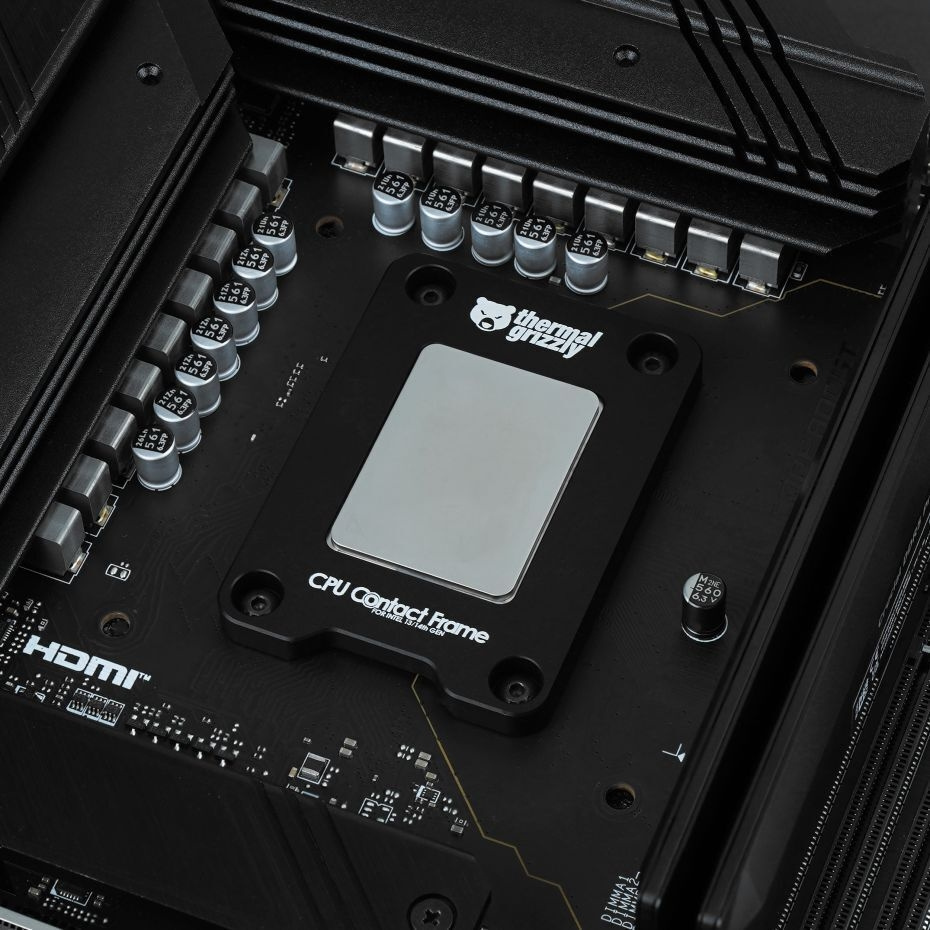 Intel 13th & 14th Gen CPU Contact Frame er en aluminiumsramme, der er udviklet i samarbejde mellem Thermal Grizzly og der8auer, og som er beregnet til 13. og 14. generations processorer med LGA1700-sokkel.