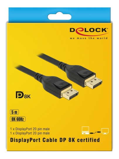 DeLock DisplayPort cable 8K 60 Hz 5 m DP 8K certified, black