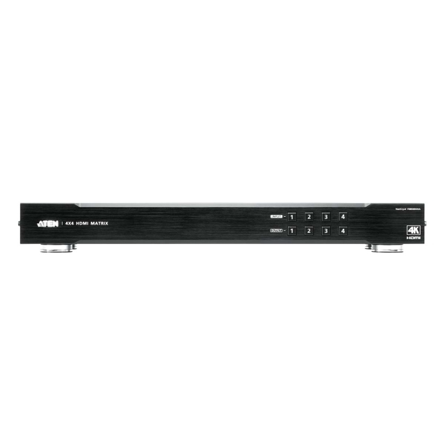 ATEN 4x4 4K HDMI-matrisswitchen VM0404HA stödjer 4K-upplösningarna UHD (3840 x 2160) och DCI (4096 x 2160) med uppdateringshastigheter på 30 Hz (4:4:4) och 60 Hz (4:2:0). VM0404HA, som är framtagen för framtidens behov av att växla mellan högupplösta videokällor, är perfekt för tillämpningar där routing av digitala 4K-signaler krävs, t.ex. i klassrum, auditorier, butiker och mer.