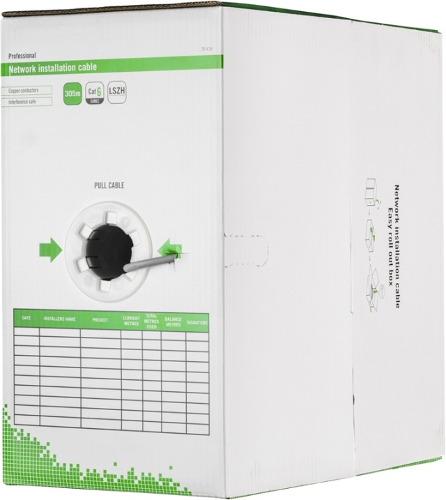 DELTACO U/UTP installationskabel, LSZH, Cat6, 305m box, 250MHz, Delta-certificeret, grå