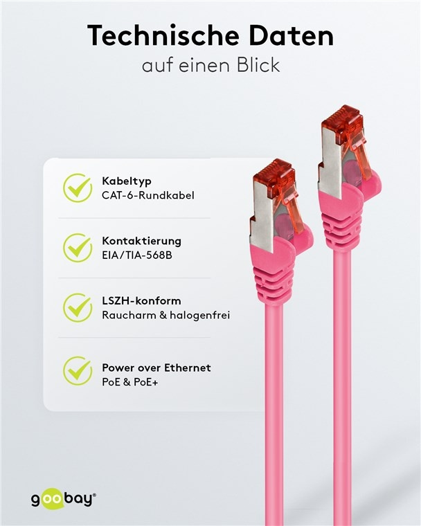 - Bøjningsbeskyttelse og stabil kappe beskytter Ethernet-kablet optimalt mod brud på kablet.