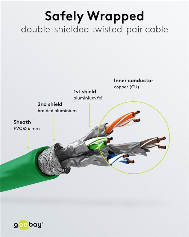 - Bøjningsbeskyttelse og stabil kappe beskytter Ethernet-kablet optimalt mod brud på kablet.