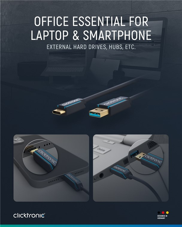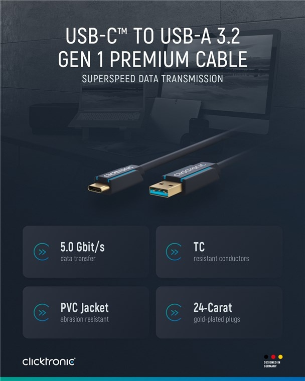 - USB-C™ til USB-A-kabel med 99,9 % iltfri kobberleder og 2-dobbelt afskærmning for optimal transmissionshastighed