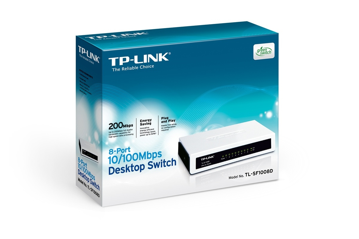 TP-LINK netværksswitch, 8-ports, 10/100 Mbps, RJ45, Auto MDI/MDIX