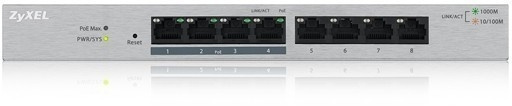 Webbaseret 8-portet GbE-switch, hvor 4 porte understøtter IEEE 802.3af/802.3at PoE+-standarden. PoE-strømforsyningen leverer strøm til overvågningskameraer, WLAN-basestationer og VoIP-telefoner via Ethernet-kabler op til 100 meter væk. Switchens maksimale PoE-strømforsyning er 60 watt. Med den brugervenlige GS1200-8HPv2-switch får du adgang til grundlæggende funktioner som PoE, VLAN, QoS, IGMP v1 / v2 og v3