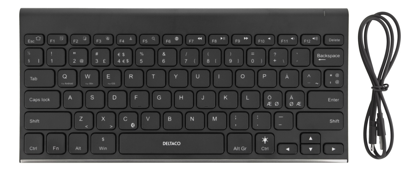 DELTACO trådløst minitastatur, lave taster, baggrundsbelyst, indbygg