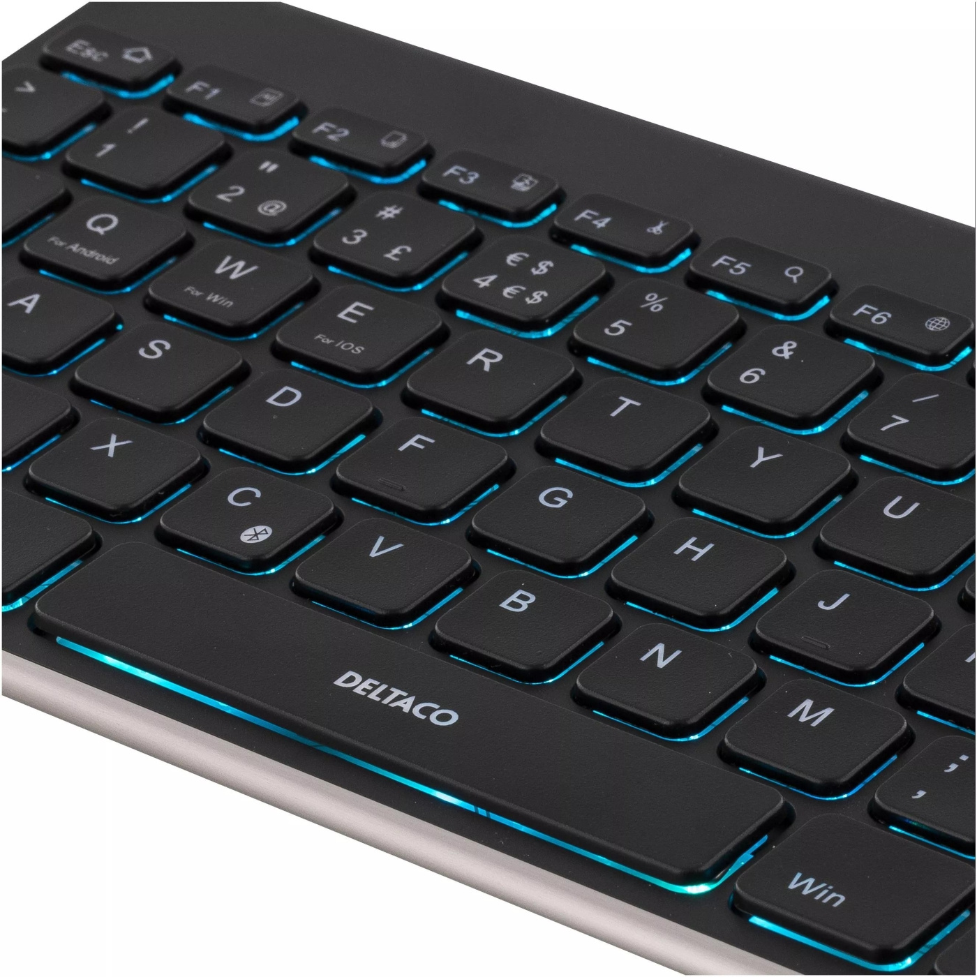 DELTACO trådløst minitastatur, lave taster, baggrundsbelyst, indbygget batteri, Bluetooth, 10m, sort