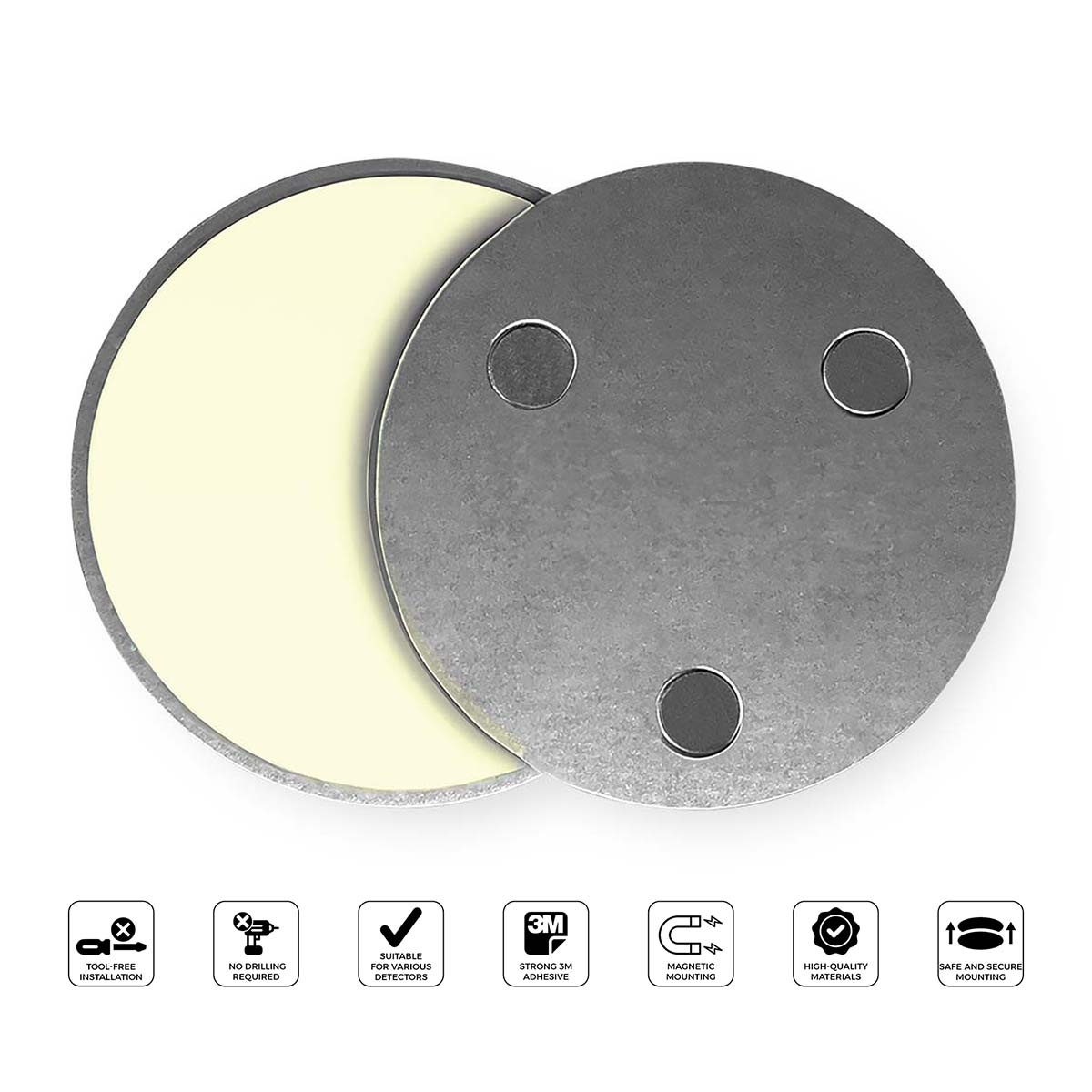 Med den här magnetiska monteringssatsen kan du installera din rök- eller kolmonoxiddetektor snabbt och säkert. Du slipper borra och håller tak och väggar intakta. Den runda formen passar de flesta rök- och CO-detektorer.