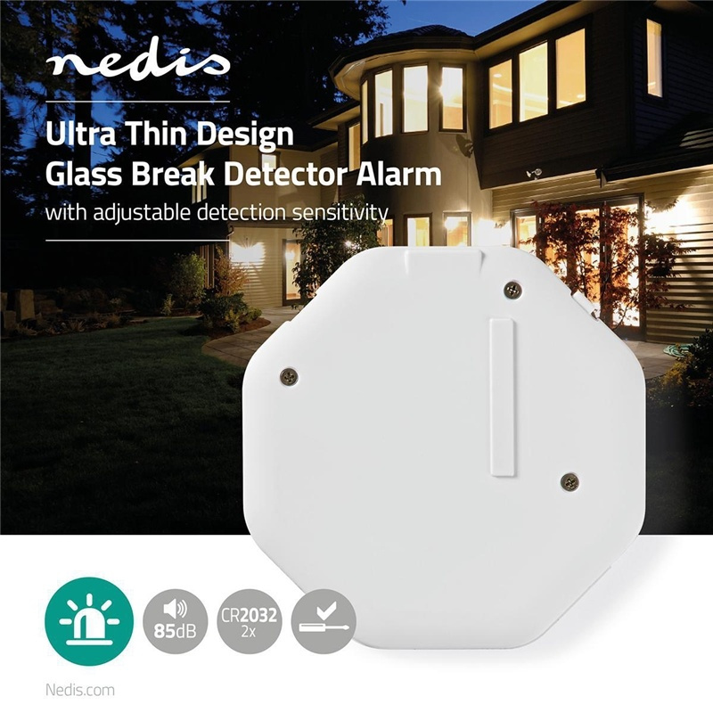 Nedis Glas Break Alarm | Udløst af: Vibration | Batteri | 2x CR2032 | 85 dB | Hvid