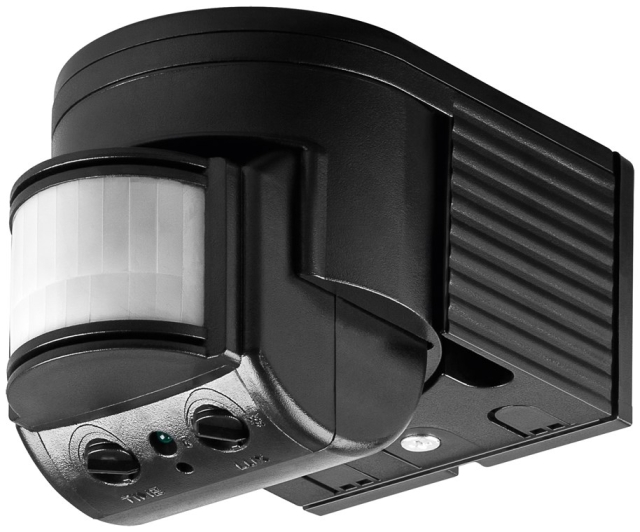 til vægmontering, 180°-detektion, 12 m rækkevidde, til udendørs brug (IP44), LED-egnet til LED Farveversion sort