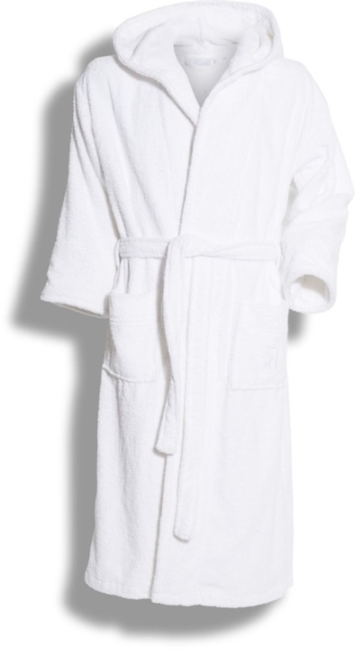 En lyxig frottérock att krypa in och mysa i, den sköna känslan förstärks av huvan. Rocken har en modern design och kommer med en brodyr, KL, på fickan. Matchas perfekt med frotté från Kosta Linnewäfveri.