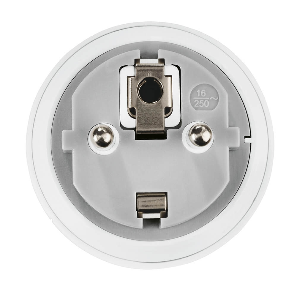 Hus i hvidt design med blå LED-indikator. Adapteren kan bruges i de fleste europæiske lande: Østrig, Belgien, Kroatien, Tjekkiet, Frankrig, Tyskland, Island, Norge, Spanien, Sverige og i mange andre lande.