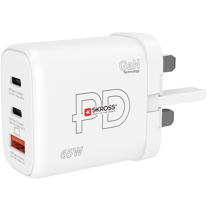 SKROSS Power Charger UK mfl. 2xUSB-C PD + 1xUSB-A GaN 65W
