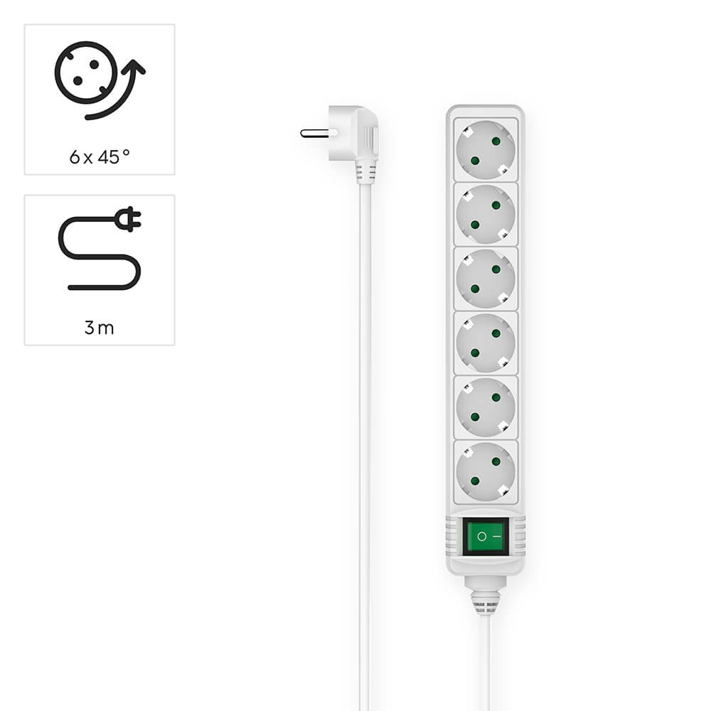 Hama Stikdåse 6-vejs Switch Hvid 3,0m