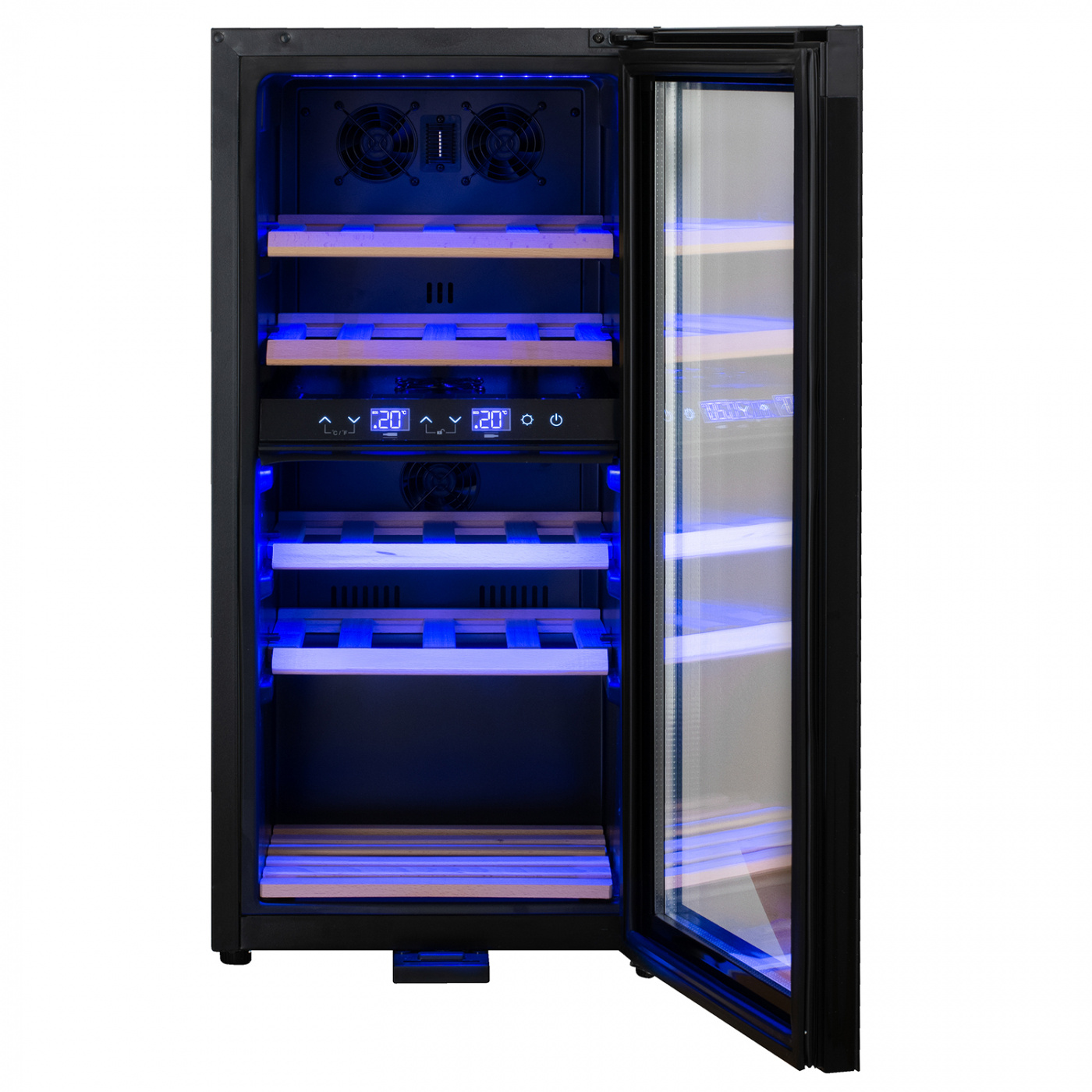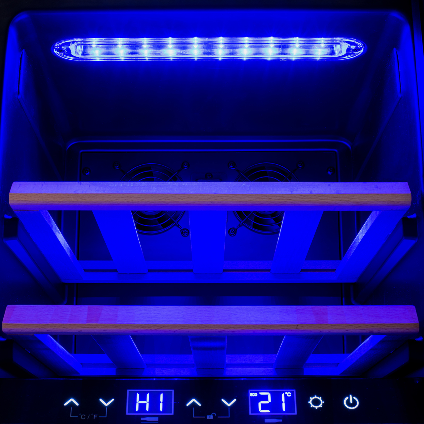 Dubbla temperaturzoner garanterar att de inställda parametrarna bibehålls och är smidig övergångar mellan dem. Tack vare denna funktion kan viner lagras vid rätt temperatur för dem utan att behöva investera i två separata enheter.