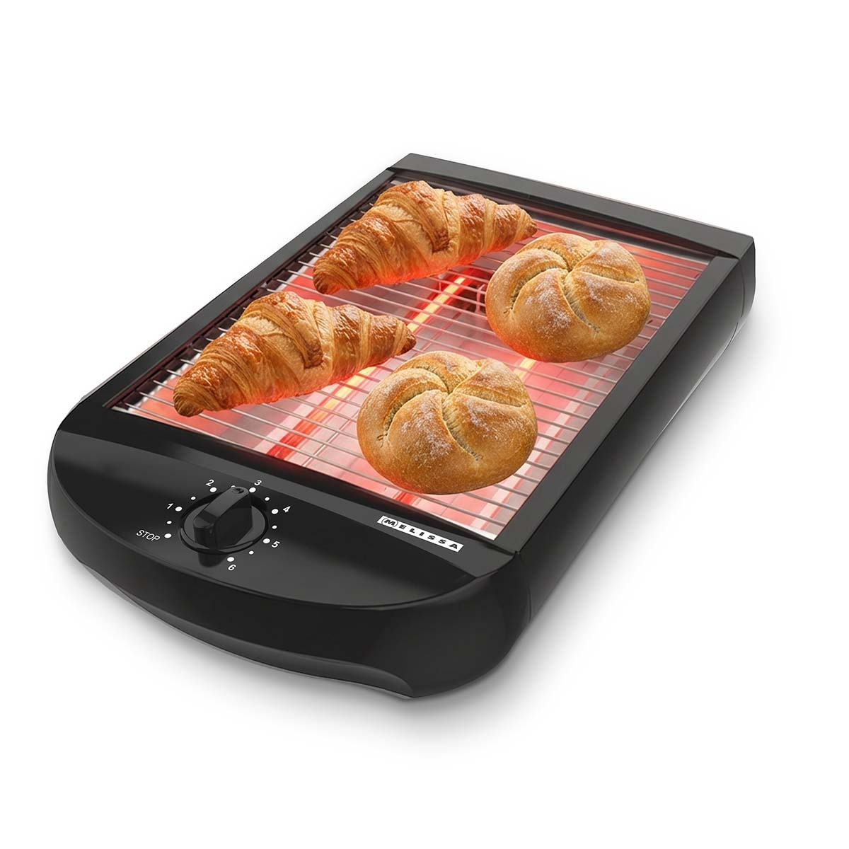 Ud over funktionaliteten har Melissa flat toaster et kompakt og tidløst design, der nemt passer ind i ethvert køkken. Dens slanke sorte finish supplerer en række forskellige køkkenstile, mens dens praktiske størrelse sikrer, at den kan opbevares uden at optage for meget bordplads.