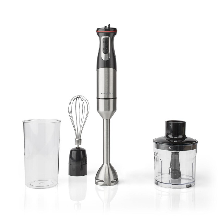 Dette Nedis ® 4-i-1-blendersæt indeholder et stort 900 ml blenderglas. Bland ingredienserne direkte i blenderglasset med stavblenderen, så får du den rette mængde med det samme. 500 ml hakkeren er fantastisk til at hakke løg, nødder og blomkål, mens stavblenderen er fantastisk til at lave lækre supper, juice til din baby og smoothies.