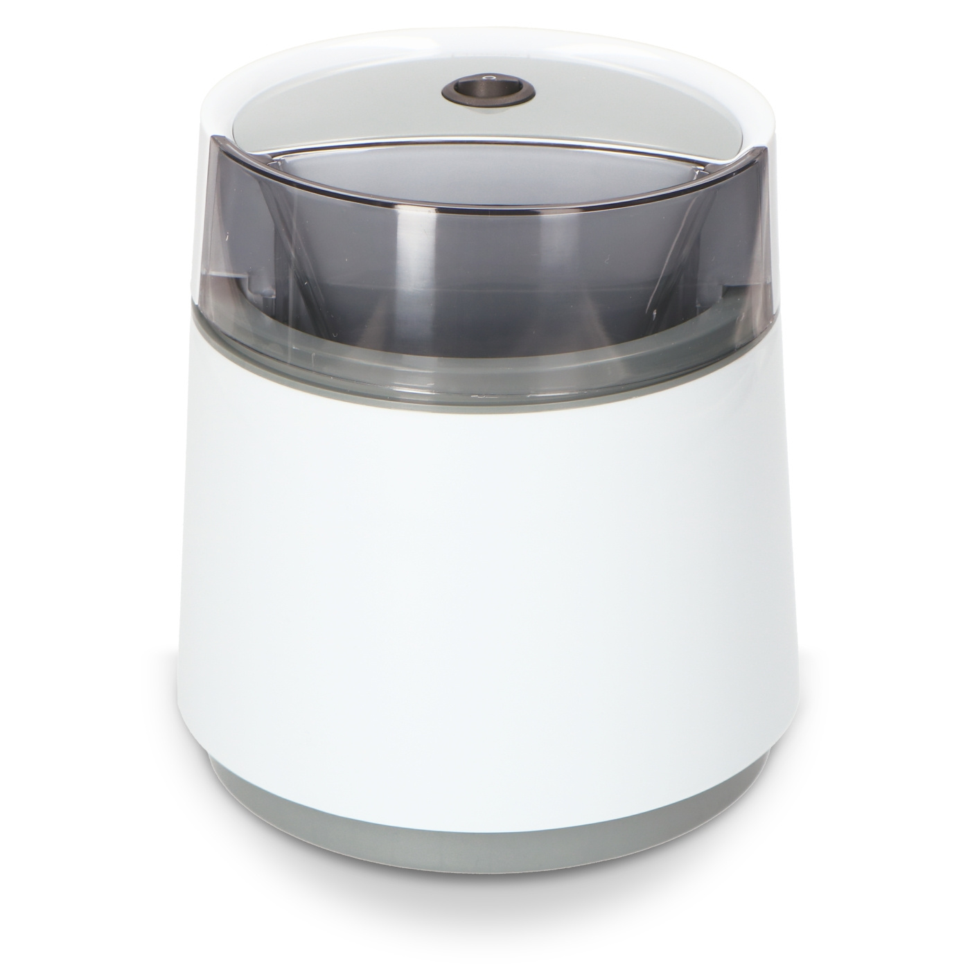 Med Trebs Ice Cream/Milkshake Machine 99254 Comfortice kan du lave din egen softice, kugleis eller milkshake i dine yndlingssmage på ingen tid. Takket være tilførselsrøret kan du tilsætte en række forskellige ingredienser, mens du tilbereder isen. Så mulighederne er uendelige, og du behøver ikke at åbne låget. Isen er klar inden for 20 minutter og forbliver iskold takket være køleelementet.