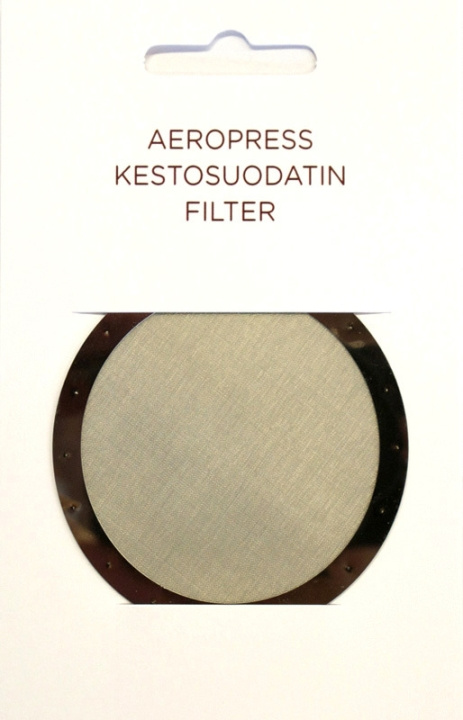 Permanent filter av rostfritt stål med nät för Aeropress kaffepress. Detta täta filter låter kaffefetterna passera igenom, till skillnad från filterpapper, vilket ger kaffet en fylligare smak. Det permanenta filtret är lätt att rengöra och kan användas tusentals gånger. När du använder en stålsil kan lite sediment samlas på botten av koppen.