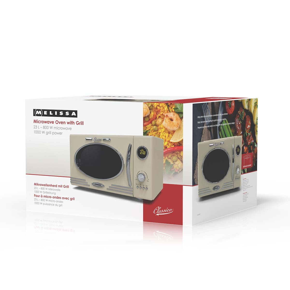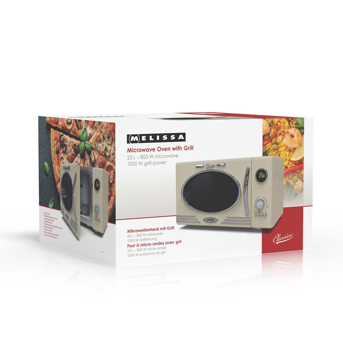 Alt i alt er Melissa mikrobølgeovn i retrostil med grill et funktionelt køkkenapparat, der afbalancerer kapacitet, kraft og brugervenlige funktioner. Den er velegnet til hverdagens madlavningsbehov og tilbyder pålidelig ydeevne, fleksible tilberedningsmuligheder og enkel betjening i en enkelt kompakt enhed.