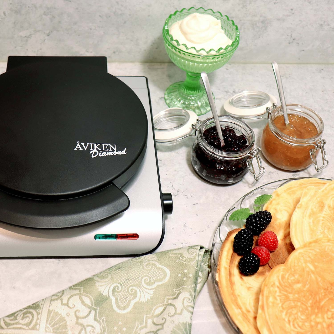 Detta Silverfärgade eleganta rånjärnet 908 från Åviken är perfekt för att göra krispiga glasstrutar, dessertrån eller traditionell krumkake
