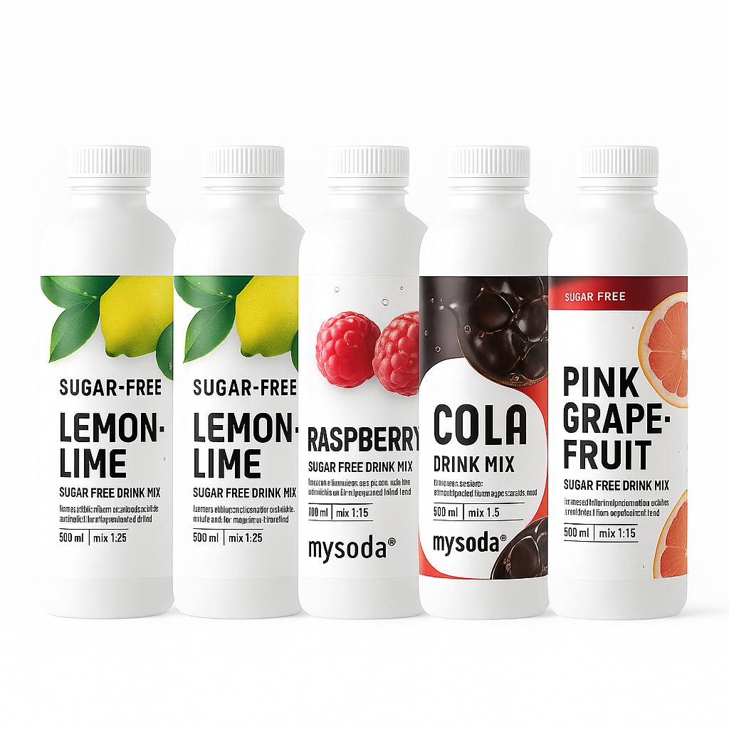 5 x 500 ml smakkoncentrat som ger upp till 36 liter bubblig dryck totalt.