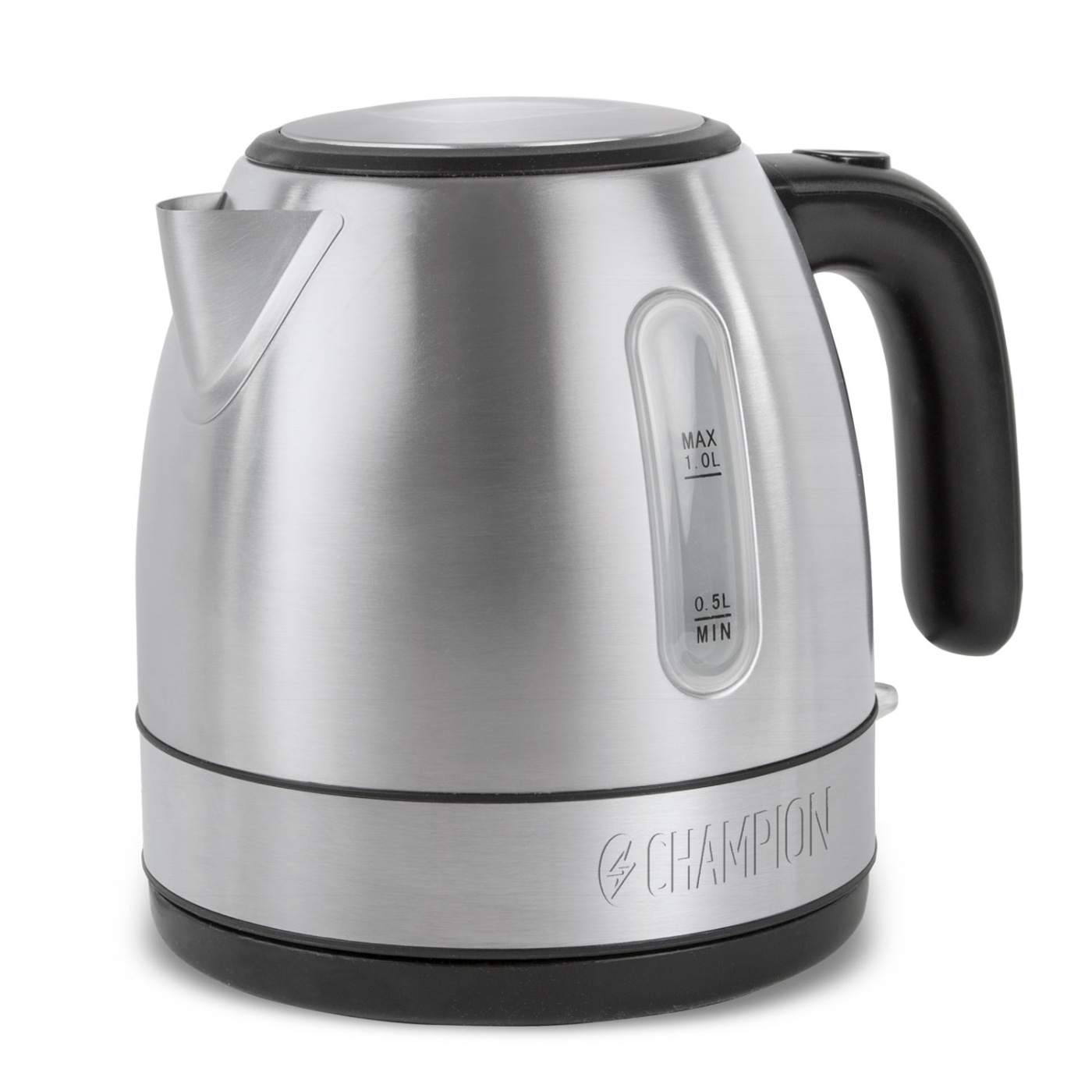 Champion CHVK050 är en stilren vattenkokare i rostfritt stål som passar utmärkt för dig som vill ha en lite mindre vattenkokare, CHVK050 har en volym på 1 l. Med sin sladdlösa konstruktion, automatiska avstängning samt torrkokningsskydd är den både smidig och säker att använda.