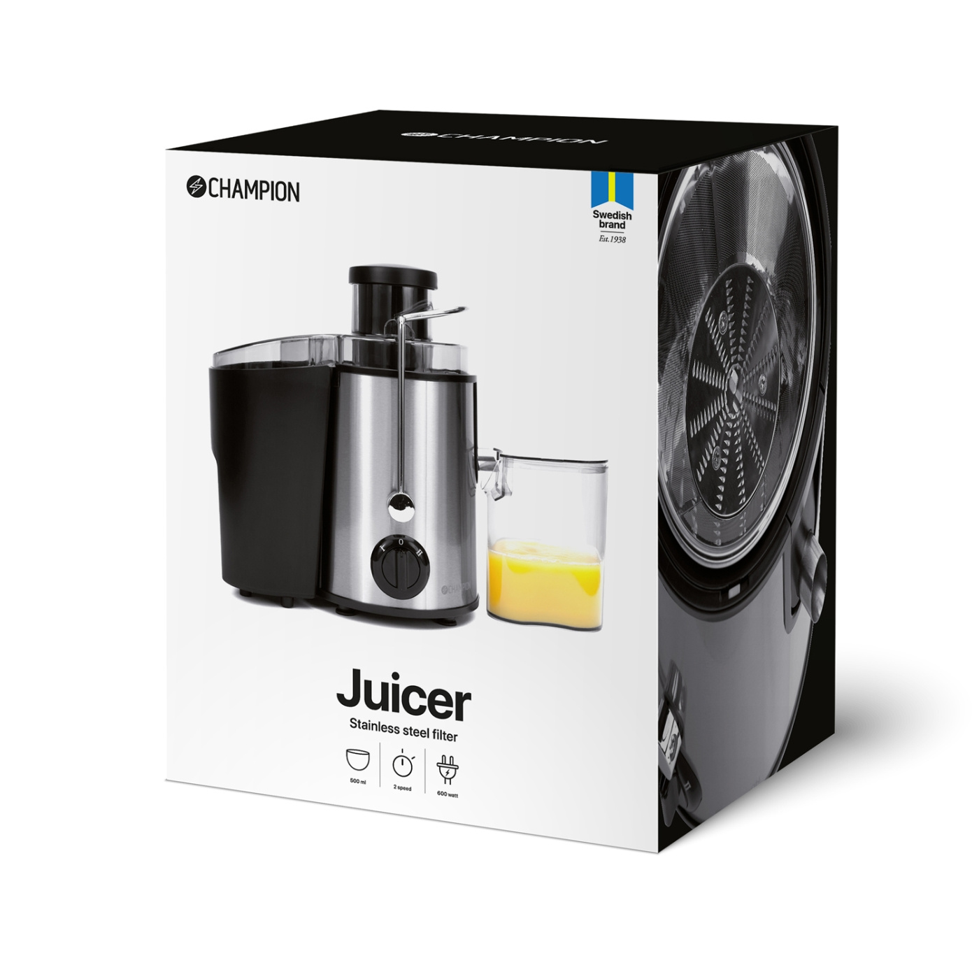 Med Champions Råsaftcentrifug kan du njuta av färskpressad slät juice och hälsoshots utan fruktkött på ett enkelt och nyttigt sätt. Välj ut dina ingredienser och låt råsaftcentrifugen göra jobbet – den kraftfulla motorn pressar saften ur både frukt och grönsaker. Filter samt blad är tillverkade i rostfritt stål och är avtagbara för enkel rengöring.