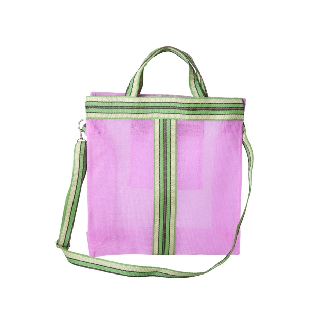Giv dit outfit et pift af farve med denne livlige, gennemsigtige cross over-taske! Denne perle er fremstillet af genbrugsplast og er en sjov, men praktisk tilføjelse til din garderobe. Den har både håndtag og en justerbar og aftagelig rem. De stribede detaljer langs siden og i midten giver et funky touch, mens lynlåsen sørger for, at dine ejendele forbliver sikre. Indeni finder du en praktisk lomme til de mindre nødvendigheder.