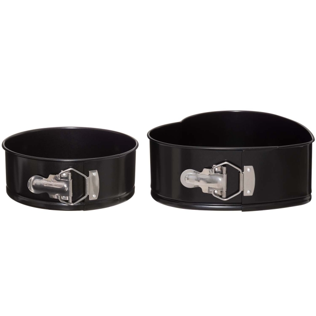 Setet innehåller en hjärtformad och en rund form – båda med non stick-beläggning som gör att bakverken enkelt lossnar och att formarna är lätta att rengöra.