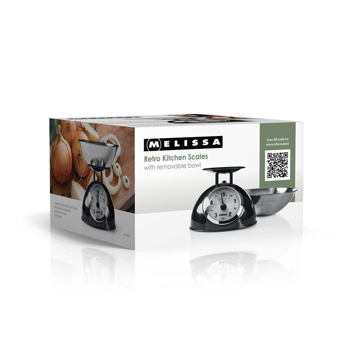 Vægten er kompakt og nem at opbevare og passer fint ind i ethvert køkken. Dens retrocharme og polerede detaljer i rustfrit stål gør den attraktiv nok til at stå på køkkenbordet, mens de praktiske funktioner sikrer, at den er klar, når du har brug for den.