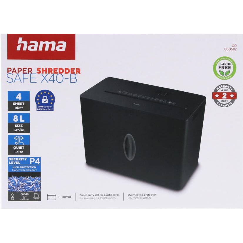 Denne makulator fra Hama sørger for GDPR-kompatibel datadestruktion med sikkerhedsniveau P4.