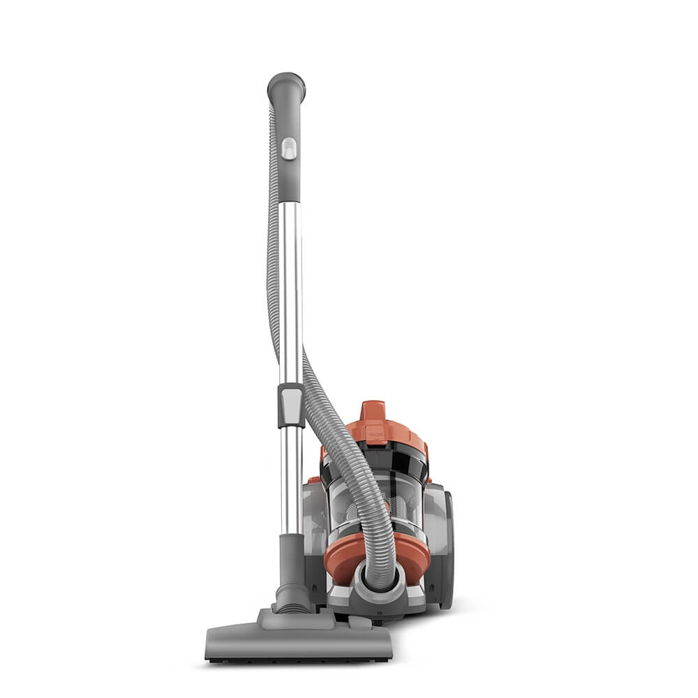 Poseløs støvsuger med Non'Stop Cyclone multi-cyklonsystem, der skaber en hvirvel inde i tanken, der adskiller partikler efter størrelse. Teleskoprøret er lavet af rustfrit stål og støvsugeren har vaskbare filtre. Gummiprofilhjul for at undgå mærker på følsomme overflader, og et let og kompakt design. Ledningen er 5 meter.