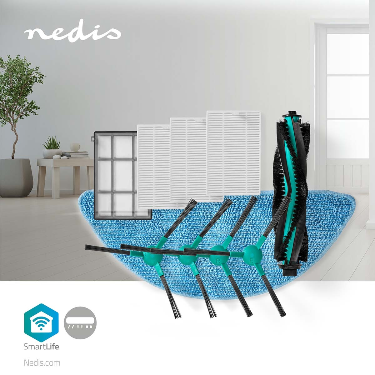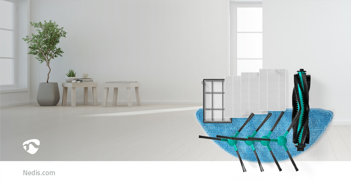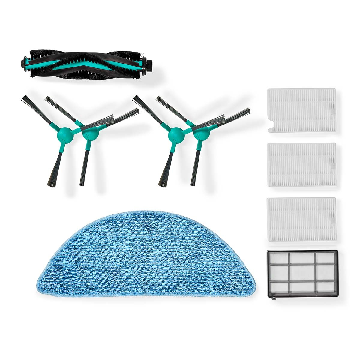 Hvis robotstøvsugeren bruges dagligt, har dette sæt alt, hvad du behøver til yderligere 6 måneder: - 3 HEPA-filtre - 1 hovedfilter - 1 rullebørste - 2 sæt sidebørster - 1 moppe