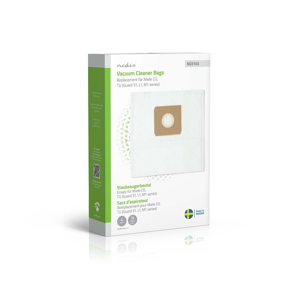 Nedis Støvsugerpose | 4 stk. | Syntetisk | Mest solgt for: Miele CO / Miele Guard S1 / L1 / M1 Series) | Hvid