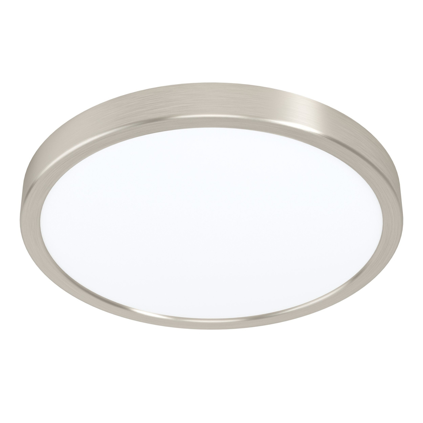 Eglo CONNECT-Z FUEVA-Z loftslampe i børstet stål. Højde 2,8 cm, diameter 28,5 cm. LED, 19,5 watt, 2500 lumen, 2700-6500 kelvin. Lampen kan dæmpes og styres med en fjernbetjening (medfølger ikke), via AwoX Home Control-appen (gratis) eller med stemmestyring. Zigbee er kompatibel med Amazon Alexa og Google Assistant. IP44. Dette produkt indeholder en lyskilde med energieffektivitetsklasse: E.