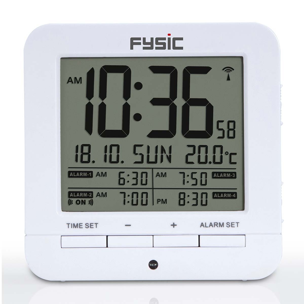 Fysic FKW-8 DCF-temperatururet viser alle de oplysninger, du forventer af et ur, på et øjeblik. Ud over klokkeslættet viser det digitale display også den korrekte ugedag og dato. I Fysic FKW-8 er der også et indbygget termometer, som viser den indvendige temperatur.